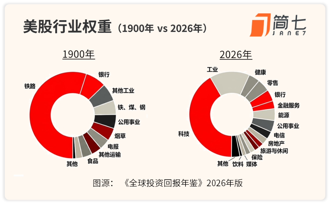 1900年,铁路占好意思国股市的63%,跟今天科技股的统帅地位差未几。其后汽车、飞机链接出现,铁路的市集份额一说念跌到不及1%。